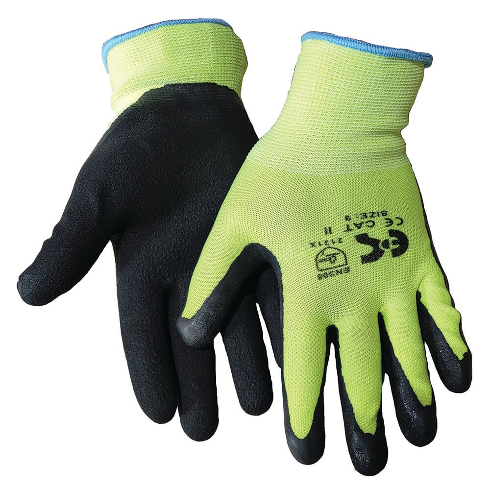Γάvτια εργασίας NBR hi-vi σαγρέ επικαλυμμένα από αφρώδες latex που εξασφαλίζουν εξαιρετική πρόσφυση στο γάντι. Σε χρώμα κίτρινο φωσφόριζε για υψηλή ορατότητα.